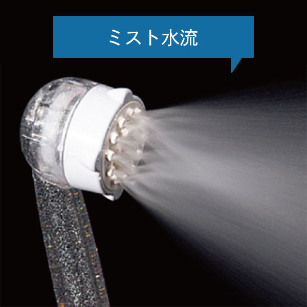 ストレート水流とミスト水流の切り替えは、ダイヤルを回すようにして簡単にできます。シャワーの水流を切り替えて、目的や効果に応じたご使用ができます。