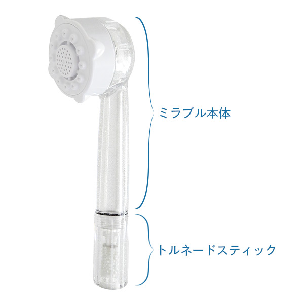 トルネードスティックの装着で、水道水の中の塩素を除去。お肌への刺激を抑える、お肌にやさしいシャワーヘッドです。